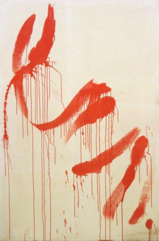 rgba(255,255,255,1) Albert ChubacSans titre ( H_P01_0034_00 )Huile sur toile, composition libre en rouge sur fond blanc, dim 147 x 98 cm© Palloc encheres Demande d'information