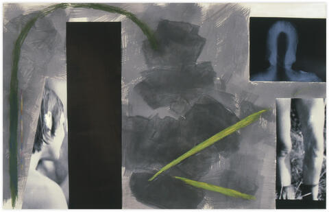 rgba(255,255,255,1) Bernadette DelrieuCoincidences - 1987Photographie, encre, crayons aquarellés, pastel sec, bois, radiographie, 114,5 x 180 cm.© Atelier Bernadette Delrieu Demande d'information