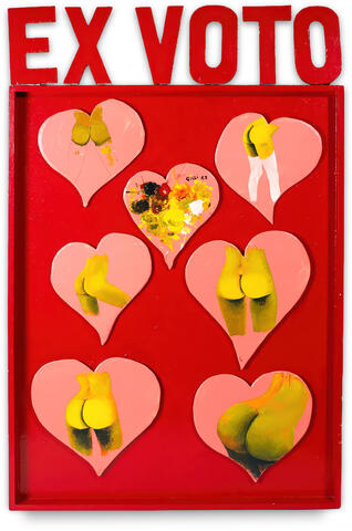 rgba(255,255,255,1) Claude Gilliex-voto Laghet — 1965Bois découpés peints et assemblés.Hauteur: 129 cm — Largeur: 83 cm — Profondeur: 5 cm© Archives Claude Gilli Demande d'information