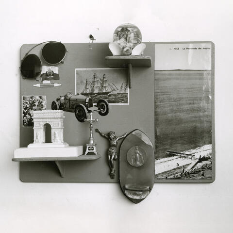 rgba(255,255,255,1) Claude GilliEx-voto (Nice, promenade des Anglais) — circa 1962Assemblage d'objets et collages.Dimensions inconnues.© Archives Claude Gilli Demande d'information