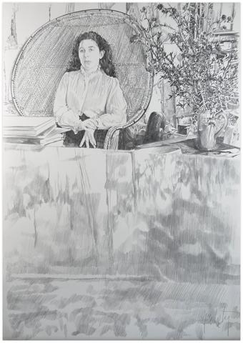 rgba(255,255,255,1) Claude GrobétyAssis grand fauteuil, bouquet chardon devant piano - circa 1979Dessin au fusain. Signé en bas à droite.76 x 56 cm© Claude Grobéty Demande d'information