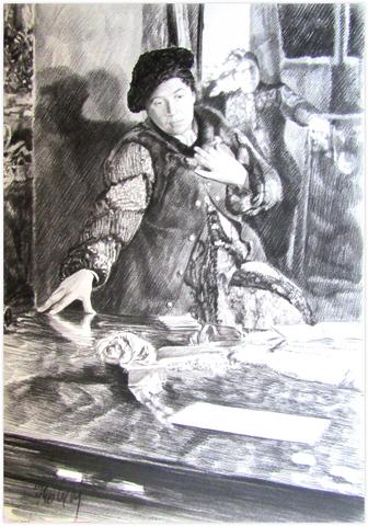 rgba(255,255,255,1) Claude GrobétyBouffon, gilet bras droit posé sur la table, ombre et double - 1978Dessin au fusain108 x 75 cm1978© Claude Grobéty Demande d'information
