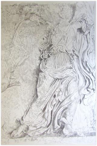 rgba(255,255,255,1) Claude GrobétyCopie Louvre drapé sur la pierre - 1979Dessin au fusain sur papier contrecollé sur carton122 x 81 cm1979© Claude Grobéty Demande d'information