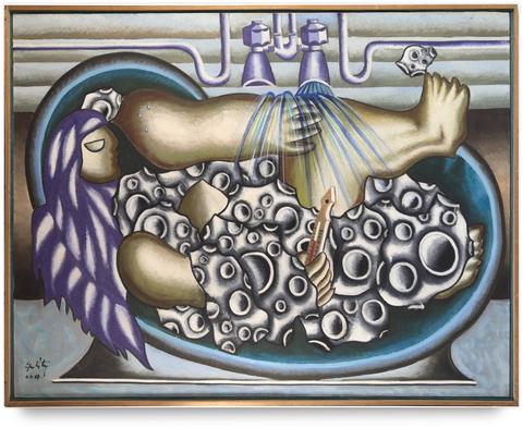 rgba(255,255,255,1) Claude GrobétyLe bain de mousse - 1967Huile sur toile, datée 06.04.1967.90 x 116 cm© Claude Grobéty Demande d'information