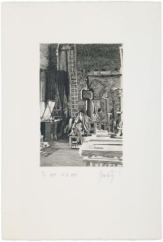 rgba(255,255,255,1) Claude GrobétyLe modèle dans l'atelier - 1979Gravure à eau-forte33 x 24 cm1979 © Claude Grobéty Demande d'information