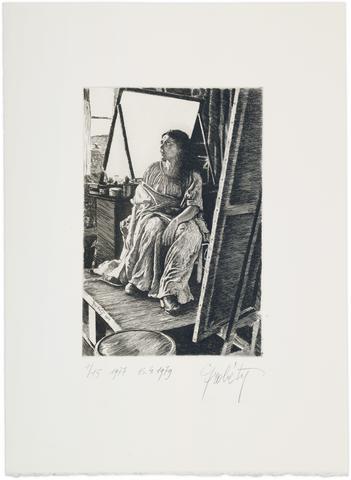 rgba(255,255,255,1) Claude GrobétyPéplos entre écran et tableau ( dite Nez rouge) - 1977Gravure à l'eau-forte, signé sur cuivre23.5 x 15.5 cm1977© Claude Grobéty Demande d'information