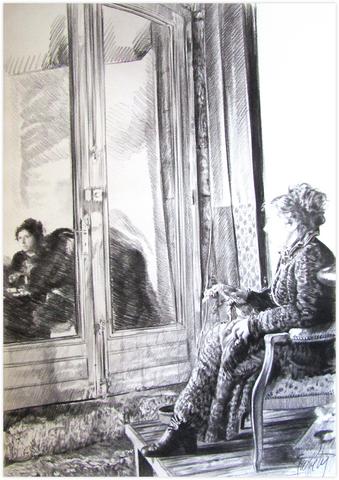 rgba(255,255,255,1) Claude GrobétyRobe chat, assis, Spip, reflet dans la porte-fenêtre - 1977Dessin au fusain108 x 75 cm1977© Claude Grobéty Demande d'information
