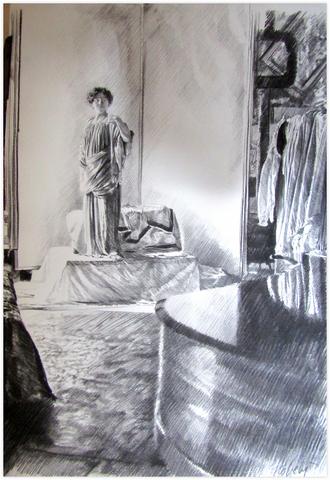 rgba(255,255,255,1) Claude GrobétyRobe verte, tunique drapée sur les hanches, reflet piano - 1977Dessin au fusain108 x 75 cm1977© Claude Grobéty Demande d'information