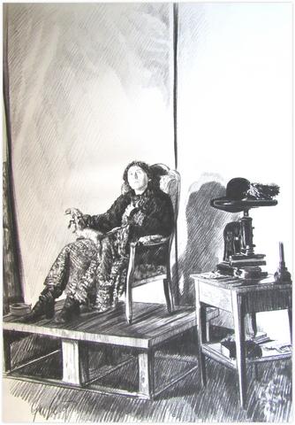 rgba(255,255,255,1) Claude GrobétyRobe, veste et Spip, autobus et chapeau à plumes - 1978Dessin au fusain108 x 75 cm1978© Claude Grobéty Demande d'information