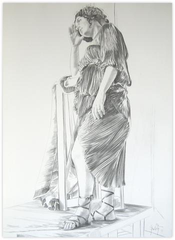 rgba(255,255,255,1) Claude GrobétyRobe violette, main au front - 1977Dessin à la pierre noire76 x 56 cm1977© Claude Grobéty Demande d'information