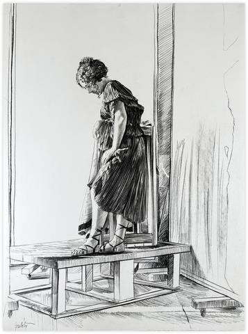 rgba(255,255,255,1) Claude GrobétyRobe violette tenue taille tête baissée - 1978Dessin à la pierre noire76 x 56 cm1978© Claude Grobéty Demande d'information