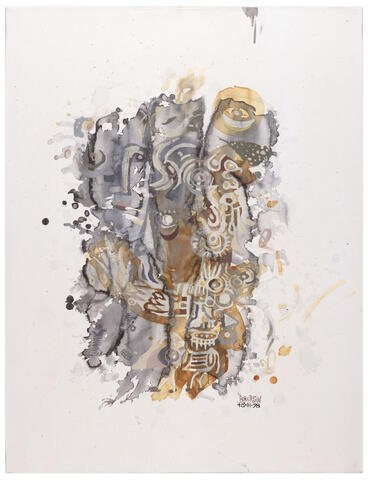 rgba(255,255,255,1) Daniel Boursinimg20251121_12092841gouache, drawing gum et brou de noix sur papier,, marouflé sur toile, 45 x 63 cm, 1998 © Archives Daniel Boursin studio Demande d'information