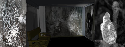 pavillon de jardin, impression sur tissu, caoutchouc, animation de dessins digitaux, vidéo en boucle ( 3'56"),