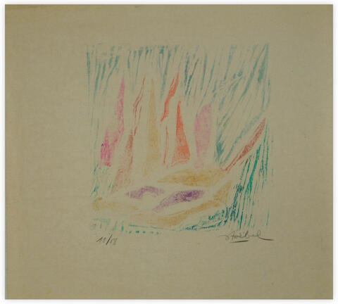 rgba(255,255,255,1) Edgar Stoëbelabstract - 11/18 — linogravure couleur sur papier, 26 x 28.6 cm© Edgar Stoëbel Demande d'information