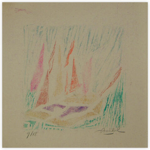 rgba(255,255,255,1) Edgar Stoëbelabstract - 9/18 — linogravure couleur sur papier, 22.8 x 22.8 cm© Edgar Stoëbel Demande d'information