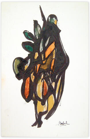 rgba(255,255,255,1) Edgar Stoëbelabstract character — encre gouache feutre sur carton (plume), 31.7 x 52 cm© Edgar Stoëbel Demande d'information