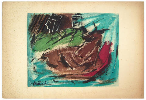 rgba(255,255,255,1) Edgar Stoëbelcheval dans un fauteuil — encre gouache sur papier gaufré, 43.8 x 65.5 cm© Edgar Stoëbel Demande d'information