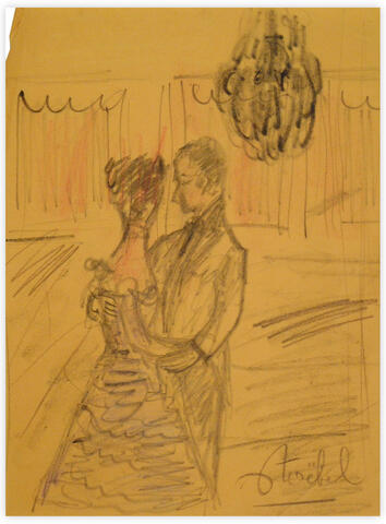rgba(255,255,255,1) Edgar Stoëbelcouple dansant — pastel feutre sur papier orange, 21.6 x 32.4 cm© Edgar Stoëbel Demande d'information