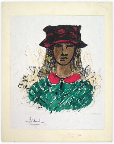 rgba(255,255,255,1) Edgar Stoëbelfemme au chapeau (buste) — encre feutre pastel sur carton, 38.1 x 48.3 cm© Edgar Stoëbel Demande d'information