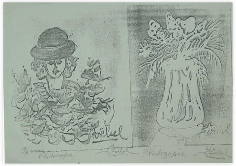 rgba(255,255,255,1) Edgar Stoëbelfemme aux fleurs 1/3 - nature morte 2/3 — photocopie trichlo sur papier, 21 x 31 cm© Edgar Stoëbel Demande d'information