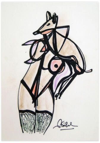 rgba(255,255,255,1) Edgar Stoëbelfemme et son animal — feutre pastel sur papier, 21 x 29.8 cm© Edgar Stoëbel Demande d'information
