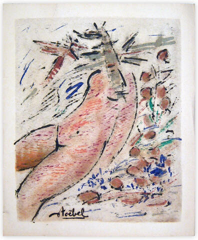 rgba(255,255,255,1) Edgar Stoëbel"femme à tête de cheval" — encre pastel gouache sur papier Relief, 45.1 x 55.8 cm© Edgar Stoëbel Demande d'information