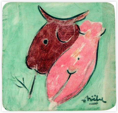rgba(255,255,255,1) Edgar Stoëbel(la belle et la bête) La femme et le bovidé — pastel gouache sur carton, 26.1 x 24.7 cm© Edgar Stoëbel Demande d'information