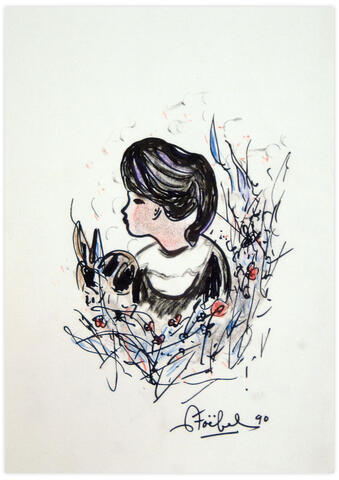 rgba(255,255,255,1) Edgar Stoëbella fille et le lapin — pastel feutre sur papier, 21 x 29.8 cm© Edgar Stoëbel Demande d'information