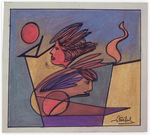 rgba(255,255,255,1) Edgar Stoëbelpersonnages et lune rouge — pastel feutre sur carton, 30.5 x 34.3 cm© Edgar Stoëbel Demande d'information