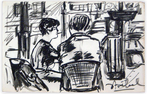 rgba(255,255,255,1) Edgar Stoëbelscène de café — feutre sur papier, 13.3 x 21 cm© Edgar Stoëbel Demande d'information