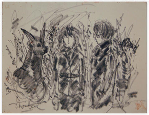 rgba(255,255,255,1) Edgar Stoëbelun homme une femme un âne — feutre sur papier, 21.6 x 26.3 cm© Edgar Stoëbel Demande d'information