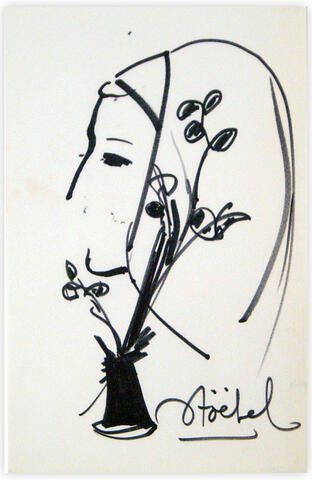 rgba(255,255,255,1) Edgar Stoëbelvase fleur et femme — feutre sur papier, 13.3 x 21 cm© Edgar Stoëbel Demande d'information