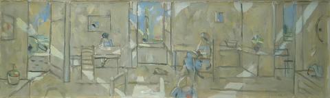 rgba(255,255,255,1) Hans SeilerAvec les enfants, 196516 x 56 cmIntérieursGouache, signée et datée en bas à droite