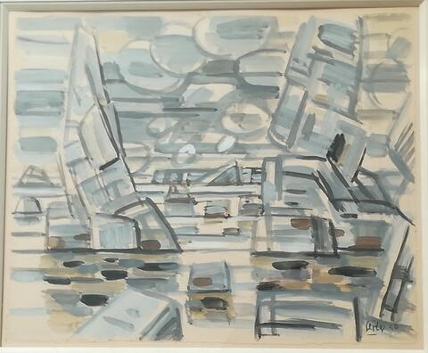rgba(255,255,255,1) Hans SeilerBelle-ile, 195421 x 28 cm. Gouache, signée et datée en bas à droite.© Hans Seiler archives Demande d'information