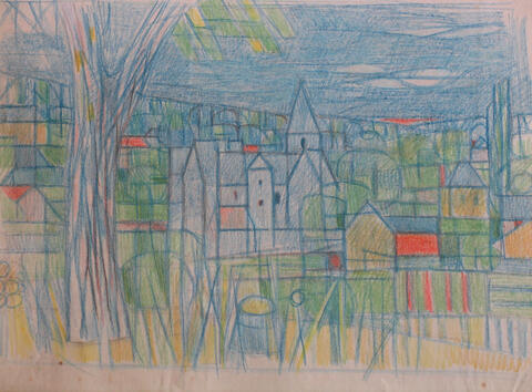 rgba(255,255,255,1) Hans SeilerEglise de Lacassagne, circa 194220 x 28 cm.Crayon de couleur sur papier, non signé.© Hans Seiler archives Demande d'information
