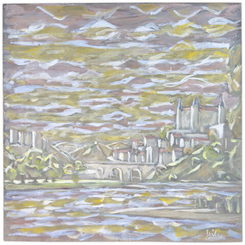 rgba(255,255,255,1) Hans SeilerGrand Tolède (mauve), circa 198049 x 49 cmEspagneGouache, signée en bas à droite