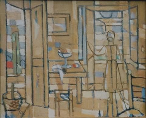 rgba(255,255,255,1) Hans SeilerIntérieur, circa 195533 x 40 cmIntérieursHuile sur panneau, signée en bas à gauche © Hans Seiler archives Demande d'information