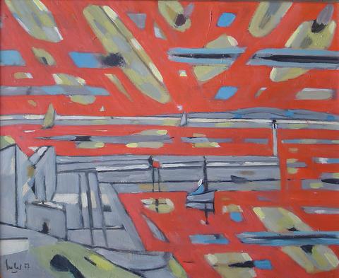 rgba(255,255,255,1) Hans SeilerLa jetée (rouge), 195734 x 41 cmBretagneHuile sur panneau, signée et datée en bas à gauche © Hans Seiler archives Demande d'information