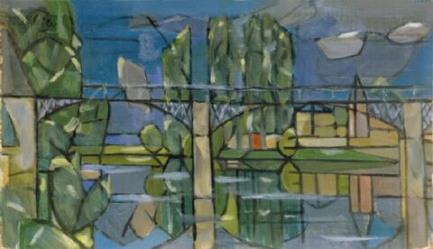 rgba(255,255,255,1) Hans SeilerLe pont de Chennevieres, circa 194524 x 41 cm.Huile sur carton, non signée.© Hans Seiler archives Demande d'information