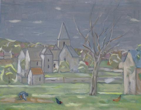 rgba(255,255,255,1) Hans SeilerL'église de Lacassagne, circa 194220 x 28 cmPérigordCrayon de couleur, Non signé