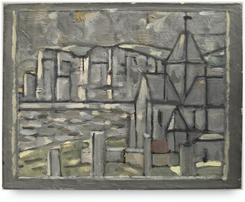 rgba(255,255,255,1) Hans SeilerL'église de Varengeville, circa 195219 x 24 cmNormandieHuile sur papier marouflée sur toile, non signée.© Hans Seiler archives Demande d'information
