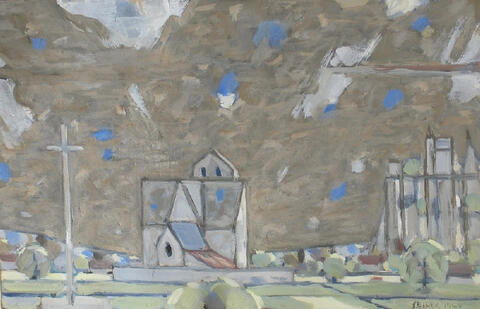 rgba(255,255,255,1) Hans SeilerL'église de Vézac, 196421,5 x 33 cmPérigordGouache, signée et datée en bas à droite © Hans Seiler archives Demande d'information
