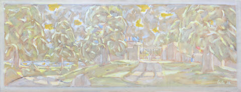 rgba(255,255,255,1) Hans SeilerL'entrée du Queroy (vert et bleu), 198729 x 55 cmSud-OuestGouache, signée en bas à droite (cachet)