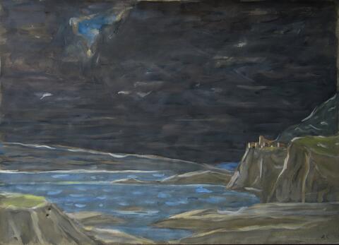 rgba(255,255,255,1) Hans SeilerLeyré (le lac bleu), circa 198536 x 50 cm.Gouache, signée en bas à droite, cachet.© Hans Seiler archives Demande d'information
