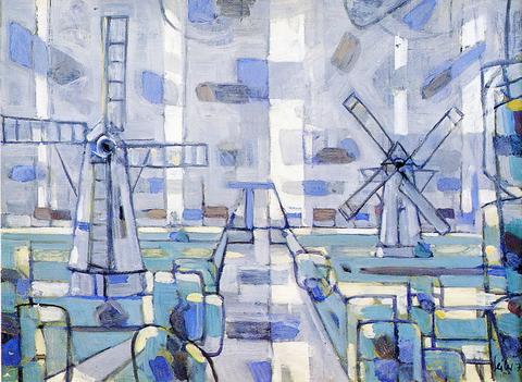 rgba(255,255,255,1) Hans SeilerMoulins en Hollande, 195720 x 27 cmHollandeGouache, signée et datée en bas à droite