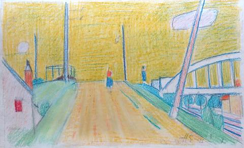 rgba(255,255,255,1) Hans SeilerVers le pont, 194215 x 23 cmChennevièresCrayon de couleur, Signé et datée en bas à droite