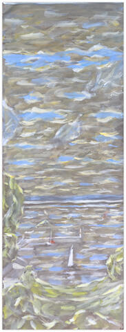 rgba(255,255,255,1) Hans SeilerVoiles à Tréboul (ciel brun), circa 198569 x 24 cmBretagneGouache, non signée