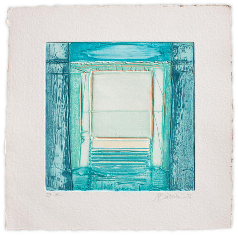 Gravure polychromie-relief sur papier Larroque, 38 x 37 cm pour une feuille de 38 x 37 cm.