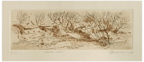 rgba(255,255,255,1) Henri BavieraHIVER OCRE — 1958Gravure au burin sur papier d’Arches, 10 x 25 cm pour une feuille de 32 x 57 cm.© Atelier Henri Baviera Demande d'information