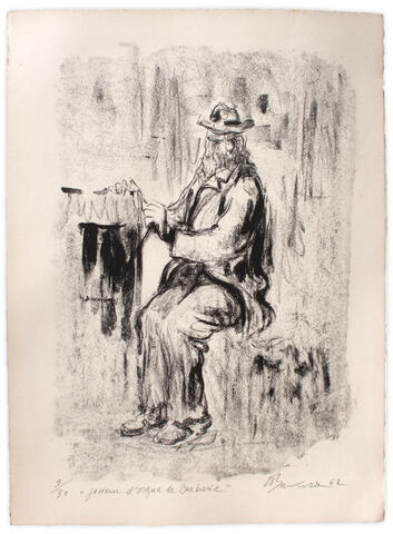 rgba(255,255,255,1) Henri BavieraJOUEUR D’ORGUE DE BARBARIE — 1962Lithographie sur papier d’Arches, 31 x 22 cm pour une feuille de 38 x 28 cm. Tirage à 8 exemplaires. © Atelier Henri Baviera Demande d'information